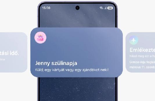 Valós idejű javaslatok, amikor csak szükséged van ráNow Nudge, intelligens javaslatokA Galaxy AI által működtetett, vadonatúj Now Nudge, intelligens javaslatok képes érzékelni a képernyőn lévő kontextust, és az alapján hasznos parancsikonokat felajánlani. Minimalizálja a következő művelethez szükséges lépéseket, sőt, automatikus kitöltési javaslatokat is kínál.A fotók könnyebben megtalálhatók és elküldhetők. Ha valaki nemrégiben készült képeket kér, a Now Nudge, intelligens javaslatok tudni foga, hogy mely képekre lesz szükséged, és megkeresi neked azokat. Ezután a galériában található konkrét fotókhoz visz, ahol néhány koppintással kiválaszthatod és elküldheted őket.26* Ez az AI funkció magyar nyelven nem elérhető.Now Brief, napi riportEgyszerűsítsd a napodat a Now Brief, napi riport funkcióval. Mostantól képes nyomon követni a mindennapjaidat és jobban megérteni a szokásaidat, mint korábban. Lejátszási listákat javasol és olyan fontos eseményekre vonatkozó emlékeztetőket, mint a foglalási részletek és a különleges utazási pillanatok, ezek mostantól mind elérhetők aprólékos összefoglalók formájában, amelyeket a nap folyamán küldenek ki.